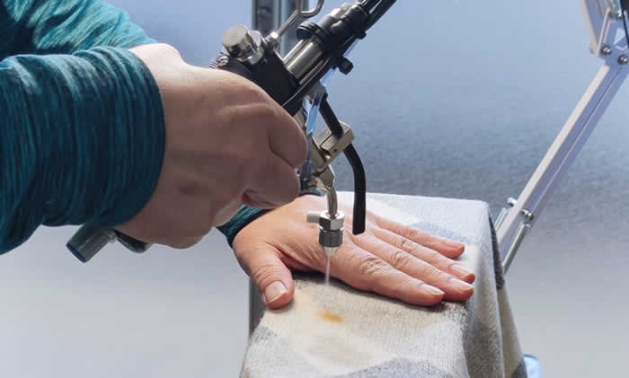 シミなどは洗う前、必要に応じて乾燥後にも処理する事で、衣類に優しい洗いができます。
