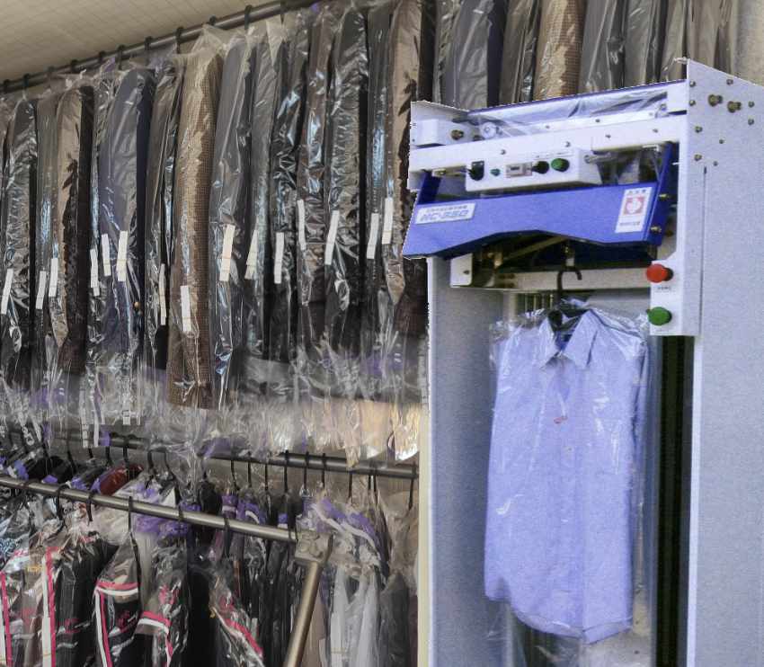 まずは一点ごと、衣類の全体の状態をチェックします。破損しやすいボタンやホックには保護カバーを取り付け、ポケットのゴミを払います。
